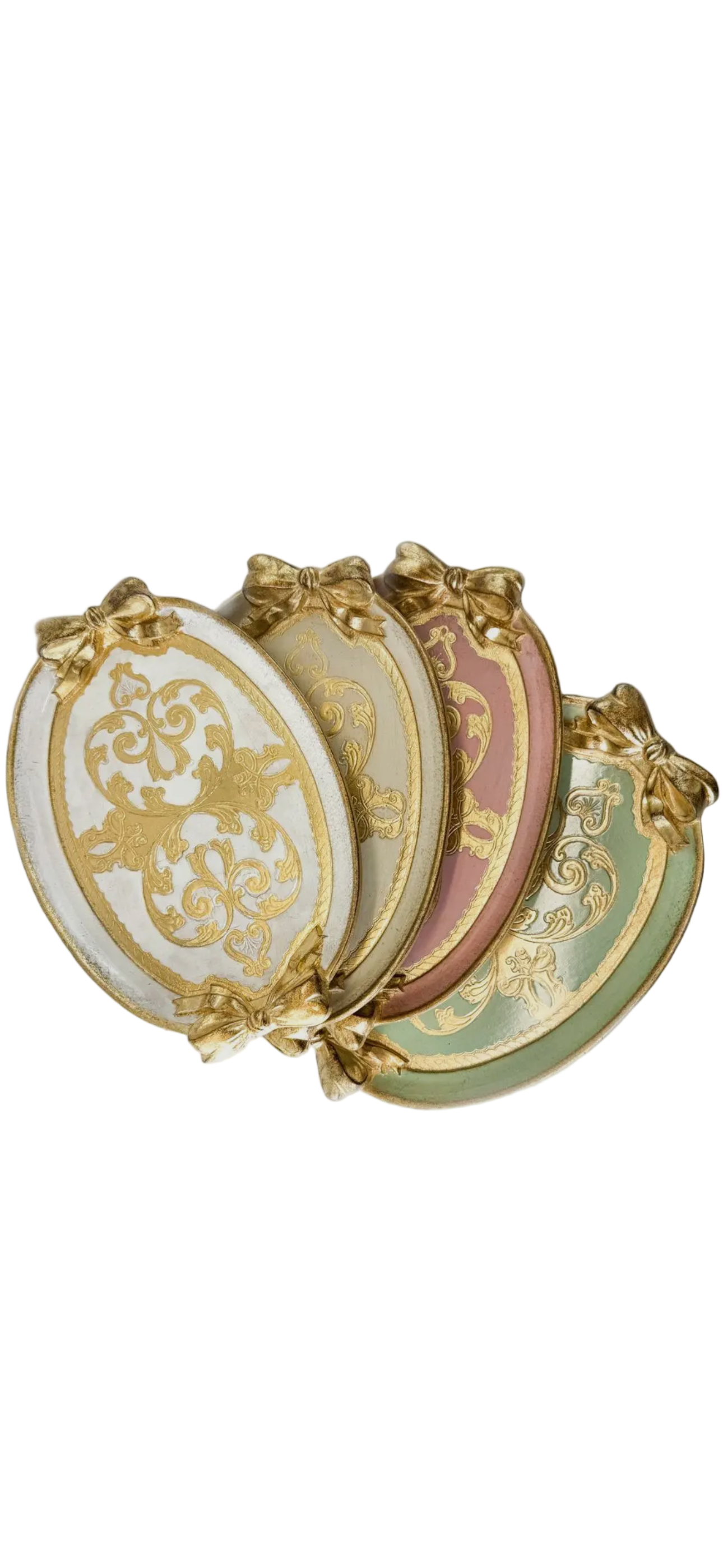 Showcasing a sweet coquette aesthetic, these gilded wood trays feature beautifully carved bow handles and an oval shape. Available in... Read more