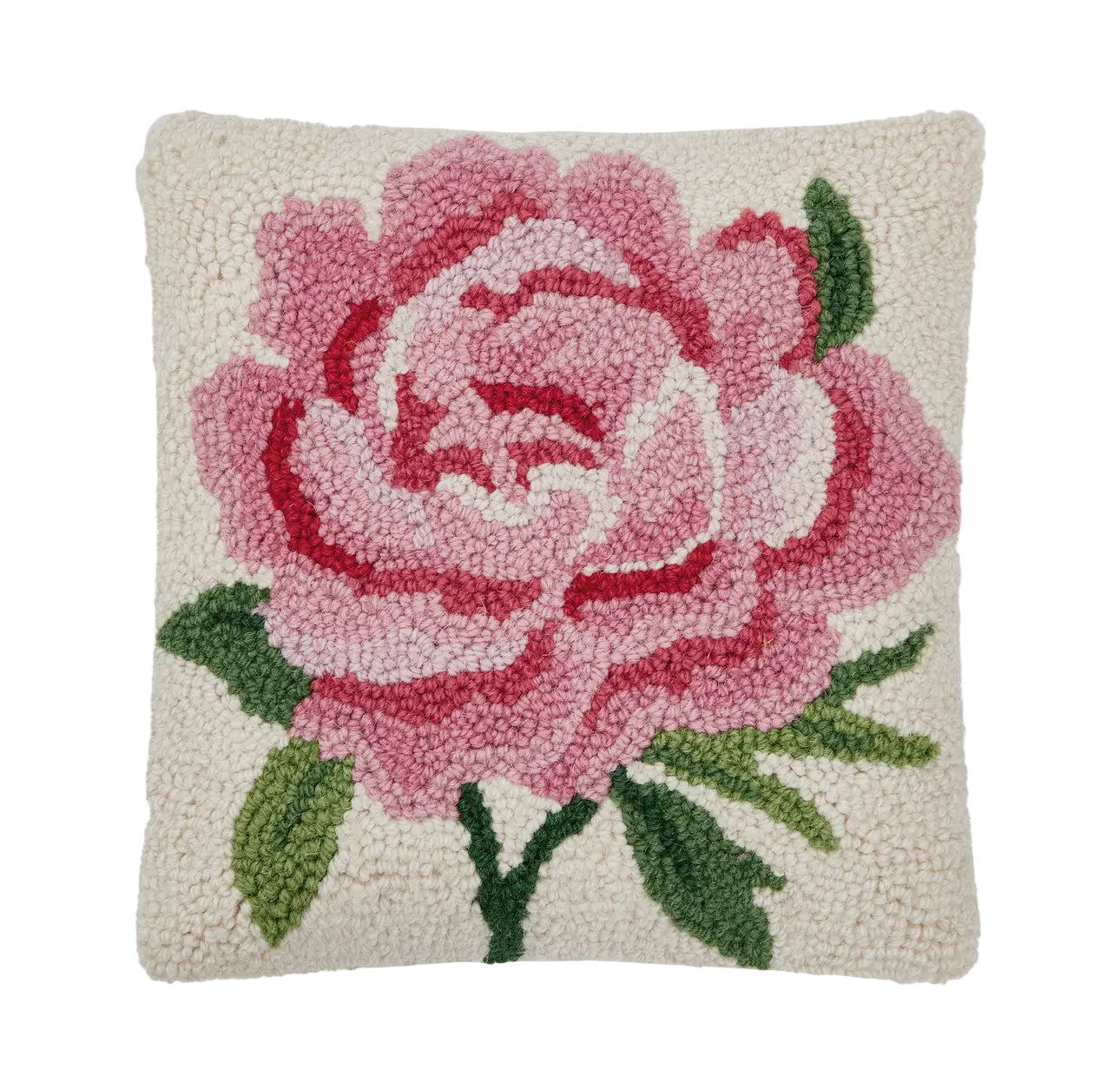 Beautiful peony wool hook accent pillow. Velvet backing and zipper closure. 10X10". Read more