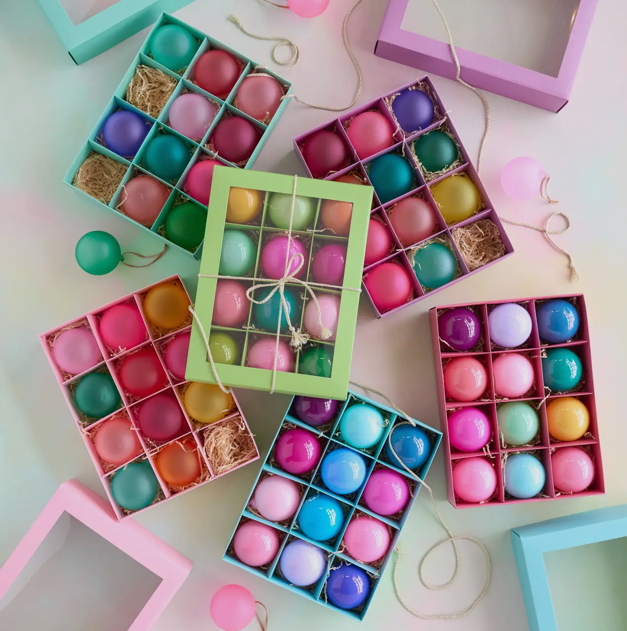 Celebrate the magic of the season with the whimsical charm of our Sugar Plum Frosted Ball Ornaments. Each glass ornament in this curated boxed set features a smooth, frosted finish in dreamy pastel tones, conjuring visions of candy-coated wonderlands and nostalgic holiday enchantment. Thoughtfully arranged in a windowed gift box and tied with string, these ornaments are perfect for gifting, displaying, or starting your own sugar plum tradition. Whether gracing a classic tree or brightening a festive garland, these sweet spheres bring joy with every glimmer.
