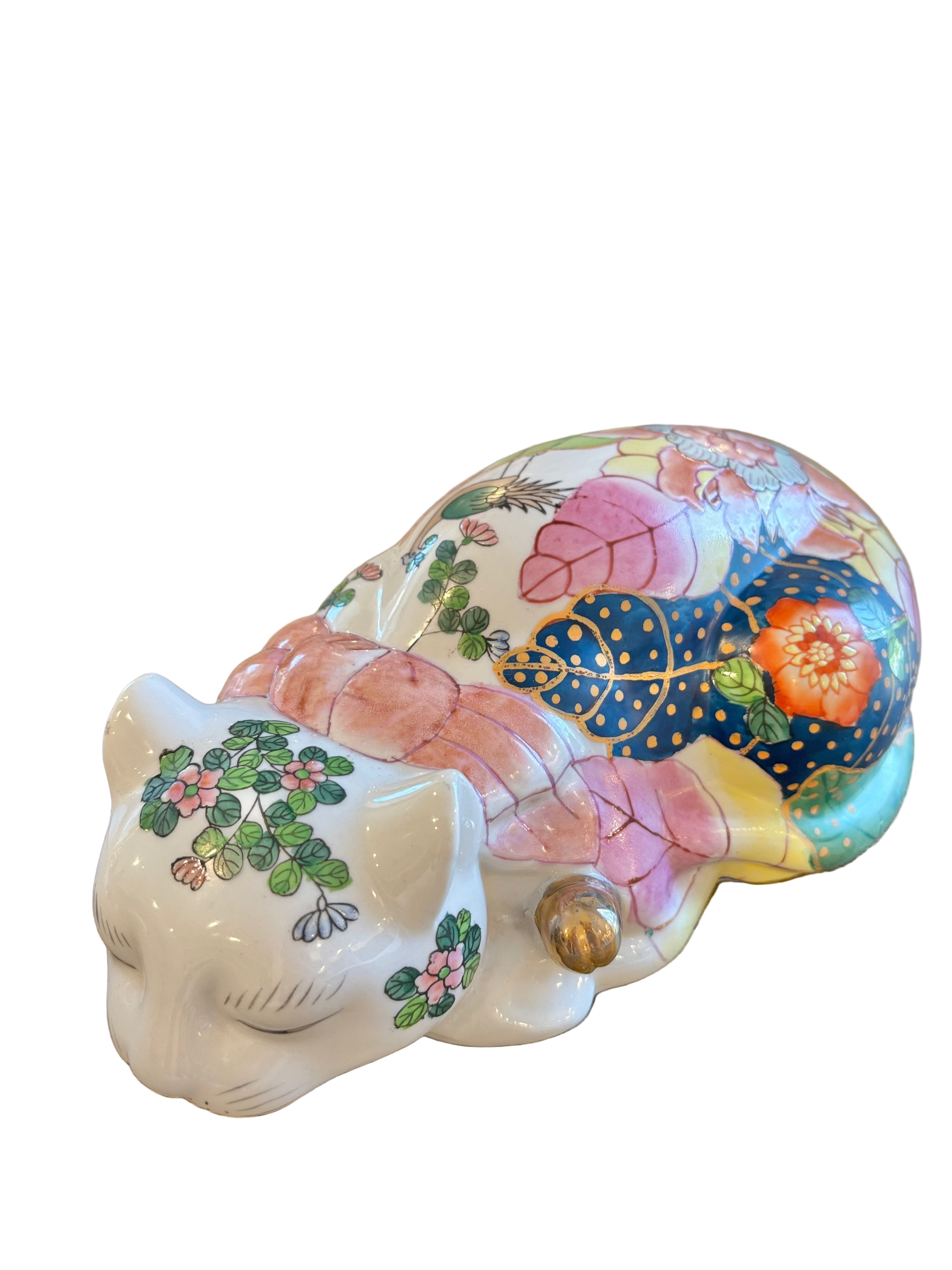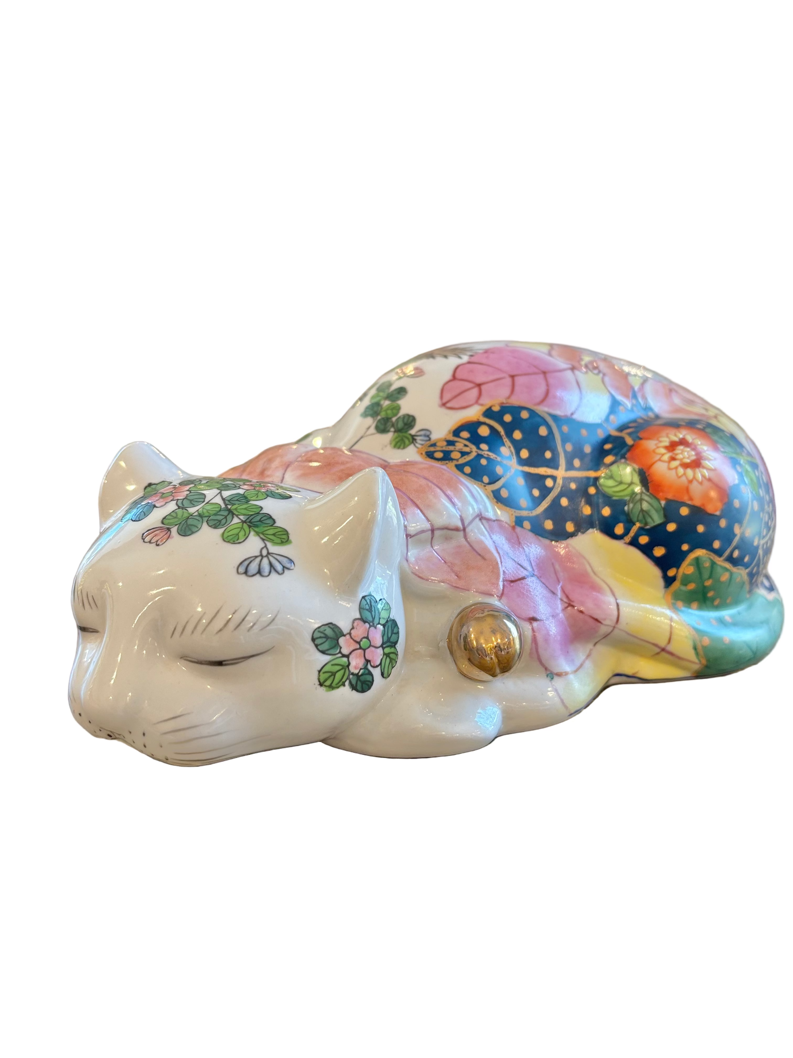 Mottahedah Tobacco Leaf pattern adorn this beautiful kitty cat! In excellent vintage condition. Read more